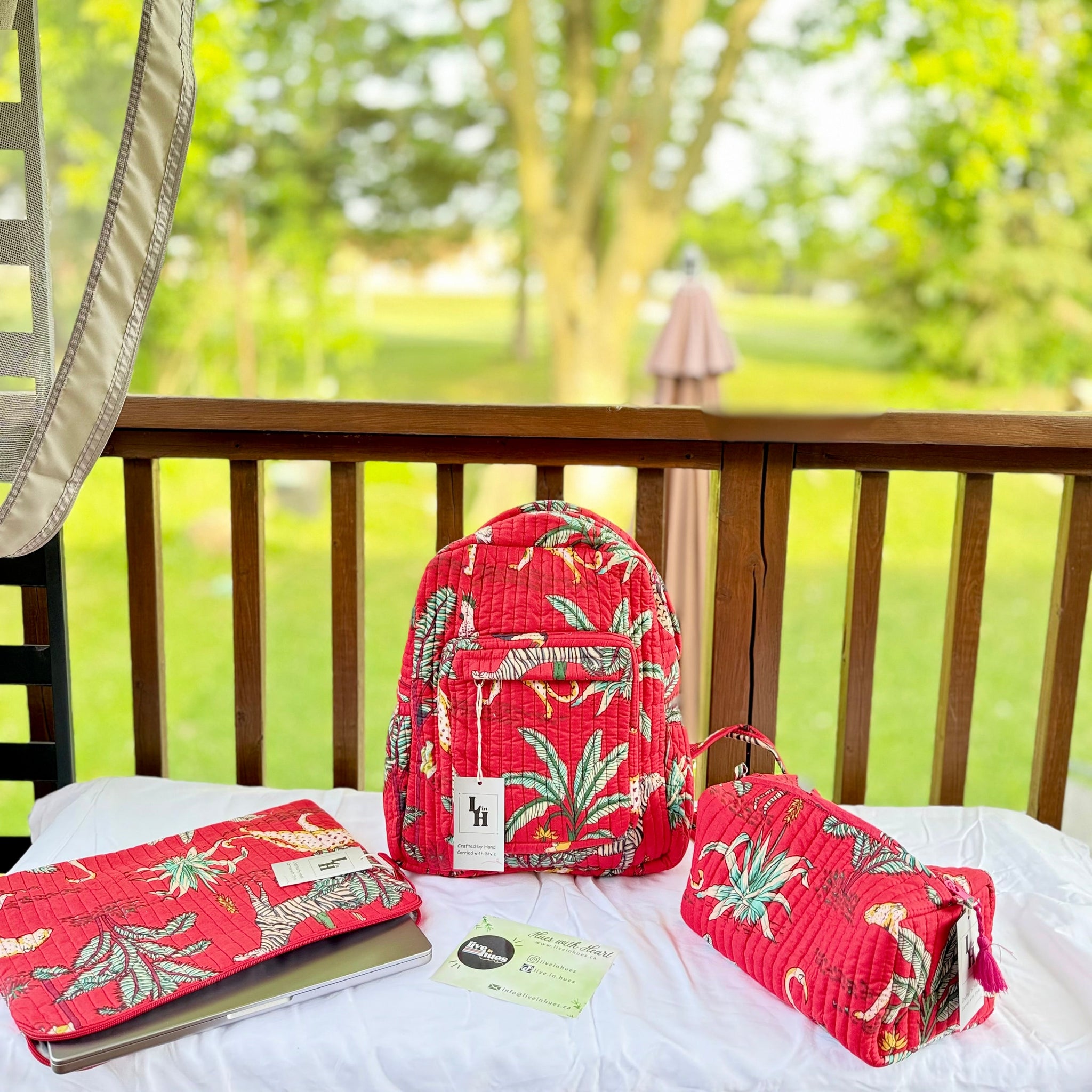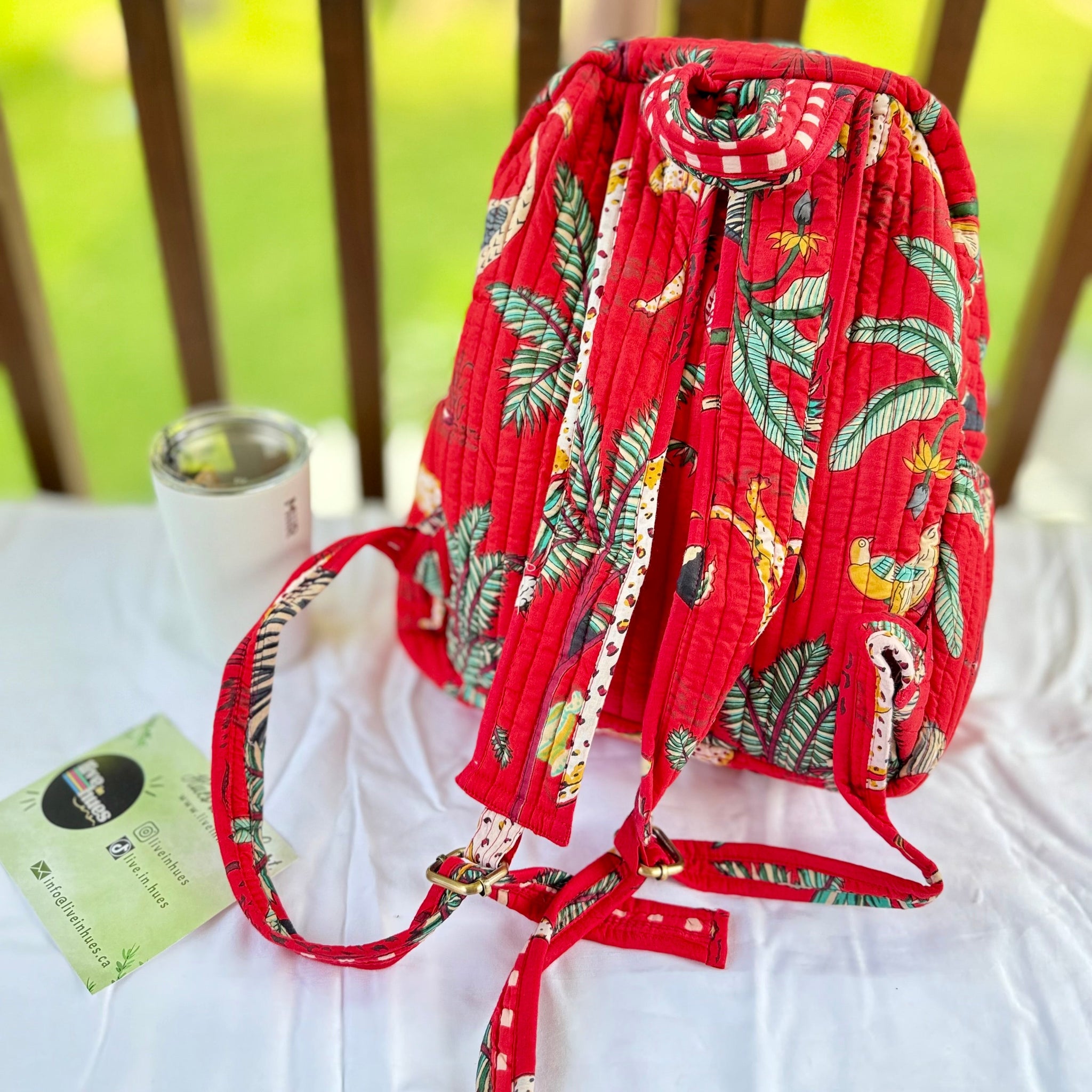 Our handcrafted cotton backpacks are made for days on the move—spacious, lightweight, and bursting with color. With thoughtful compartments, soft cotton straps, and signature block-printed charm, these bags are your perfect everyday + everywhere carry.