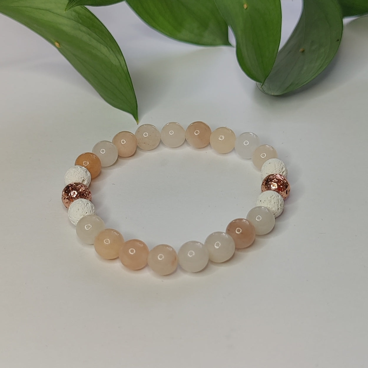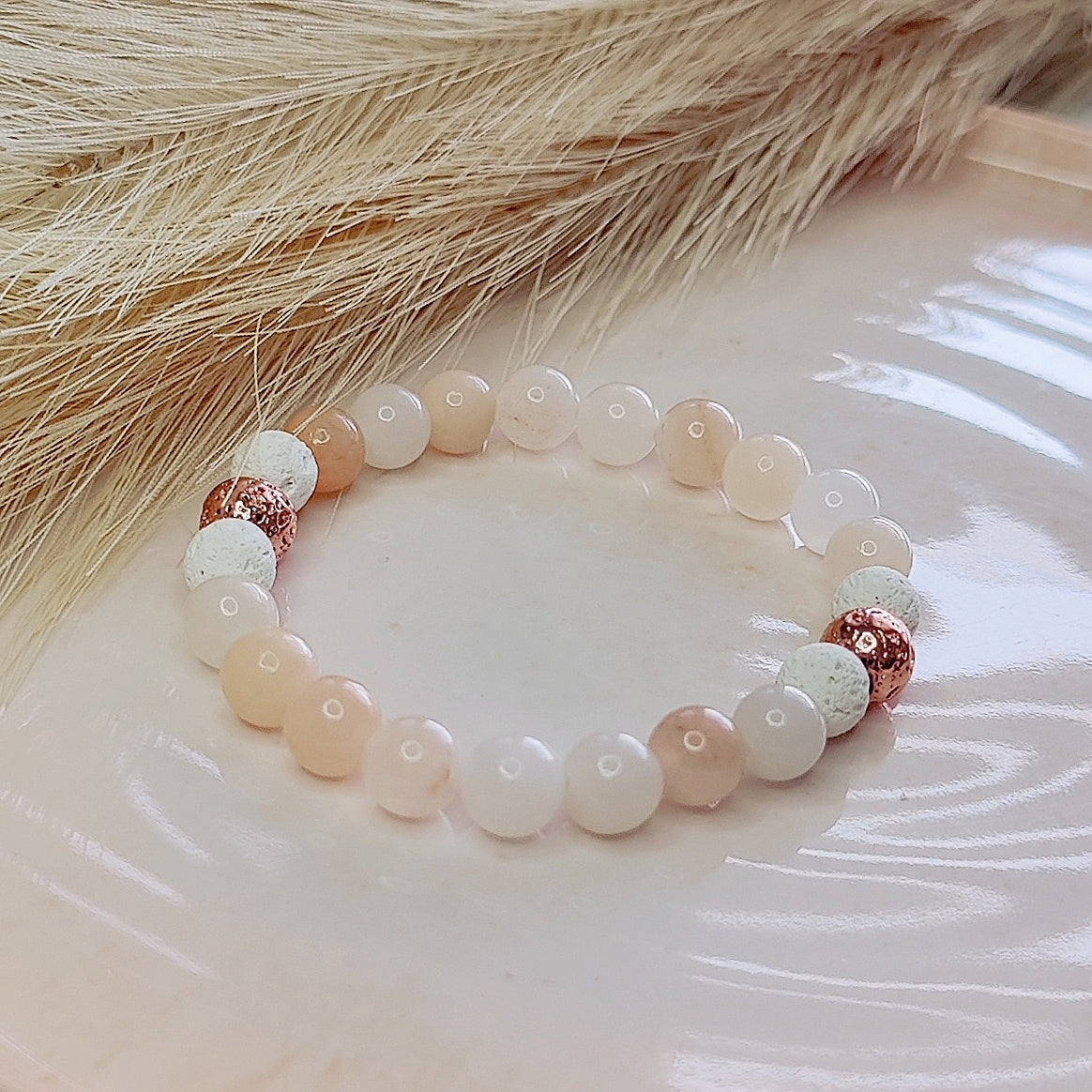 Embrace calm, confidence, and feminine energy with our handcrafted Peach Moon bracelet, made with soothing Pink Aventurine and natural White Lava stones. Designed to promote emotional healing and inner peace, this bracelet combines soft blush tones with grounding white texture — perfect for everyday elegance.