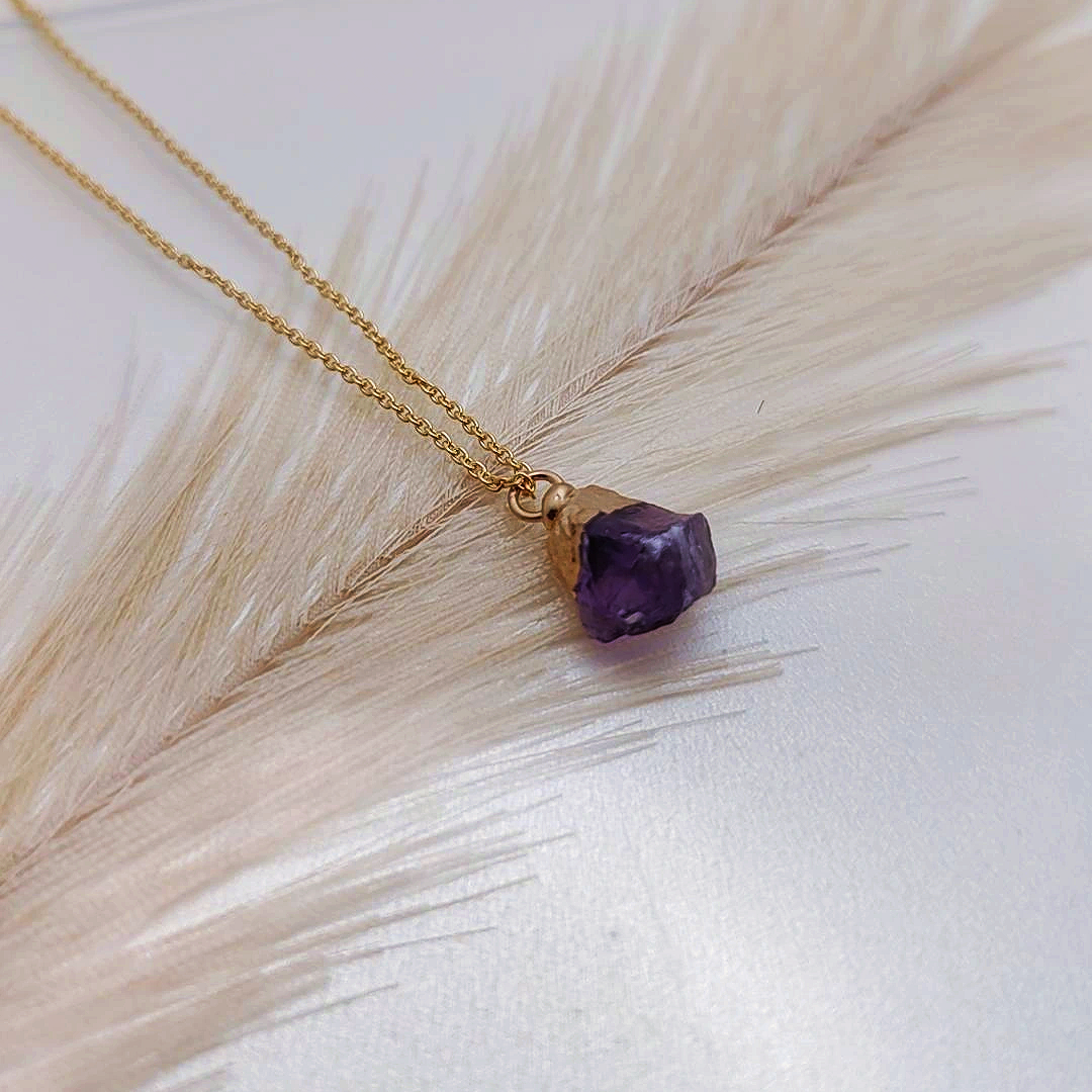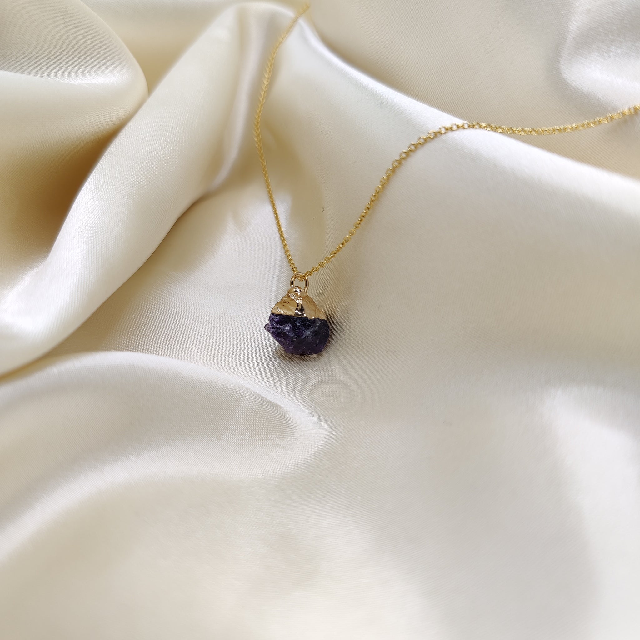 Step into stillness with Myst Amethyst, a piece born from quiet wisdom and ethereal beauty. This necklace features a raw Amethyst pendant suspended on an 18-inch gold-plated sterling silver chain — a delicate fusion of simplicity and soul.